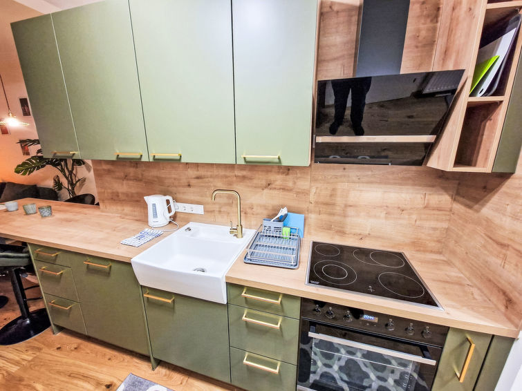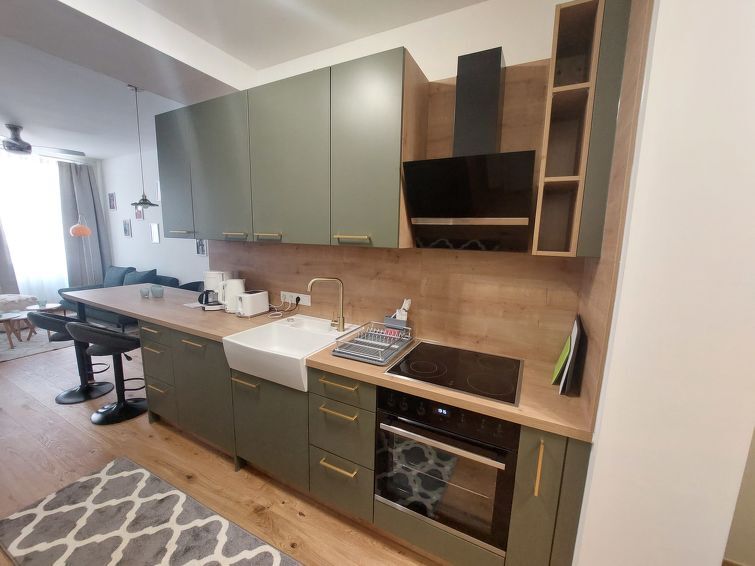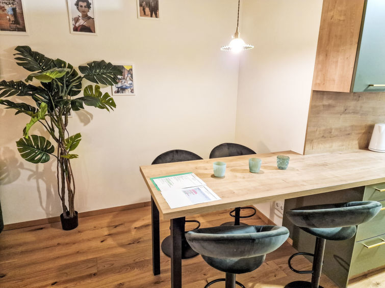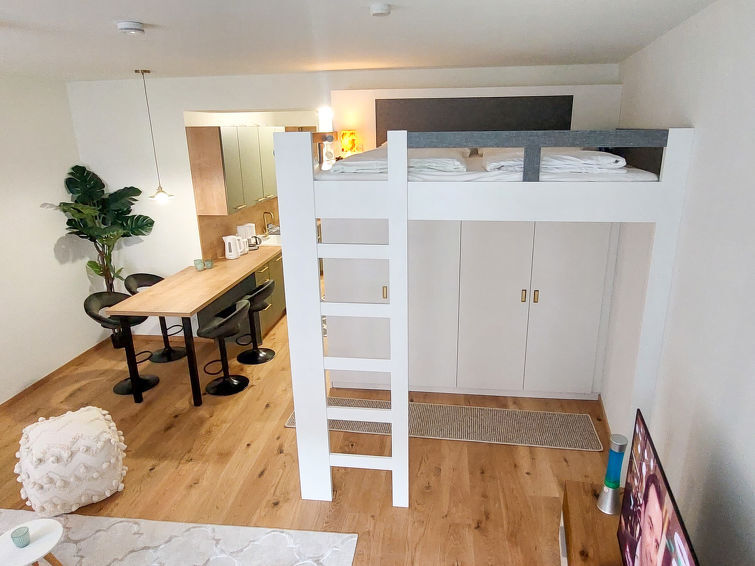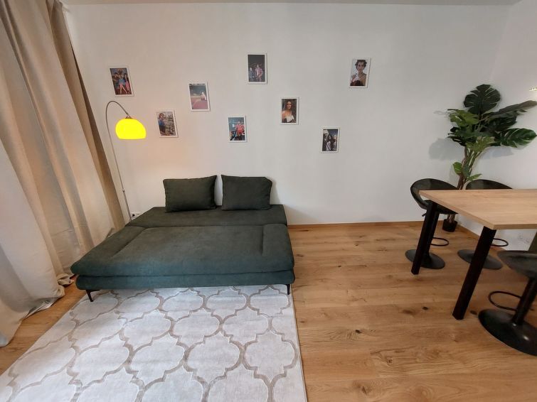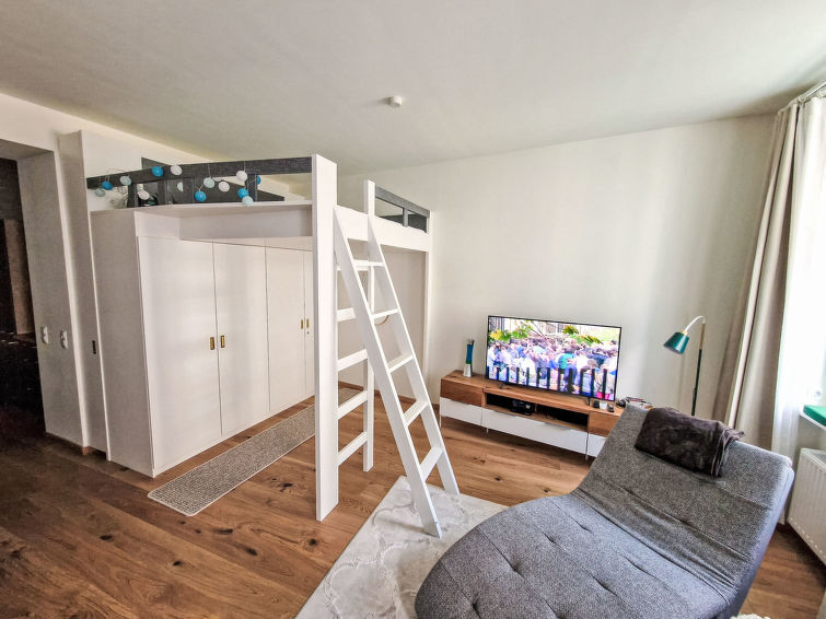 "Premium Apartment MariaHilf 1" studio 42 m2 au 2ème étage. Logement idéal pour 4 adultes. Spacieux et clair, complètement rénové en 2023, aménagement très confortable et moderne: entrée. Séjour/chambre à coucher ouvert avec 1 x 1 lits superposés (180 cm, longueur 190 cm), 1 lit gigogne (2 pers.), TV (câblée), écran plat, radio, lecteur CD et DVD. Cuisine ouverte dans l'entrée (4 plaques de cuisson, lave-vaisselle, grille-pain, bouilloire électrique, cafetière électrique). Bain/WC. Chauffage. Sol en bois. A disposition: lave-linge, fer à repasser, lit bébé. Internet (Connexion WIFI, gratuit). Veuillez noter: logement non-fumeur. Lits superposés (180cm) est un lit mezzanine.