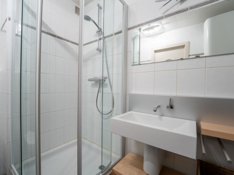 "Deauville II", apt 2 pièces 45 m2 au 2ème étage. Aménagement confortable et moderne: séjour/chambre à coucher ouvert avec 1 x 2 lits superposés (90 cm, longueur 200 cm), table pour les repas, Télévision numérique et chaînes de TV internationales. Sortie sur le balcon. 1 chambre double avec 1 lit double (160 cm, longueur 200 cm). Cuisine ouverte (lave-vaisselle, 4 plaques vitrocéramiques, grille-pain, bouilloire électrique, micro-ondes, cafetière électrique). Douche/WC. Chauffage. Mobilier de balcon. A disposition: sèche-cheveux. Internet (Connexion WIFI, gratuit). Place de parking No 49 (1 Voiture). Veuillez noter: maison non-fumeur. Détecteur de fumée, extincteur.