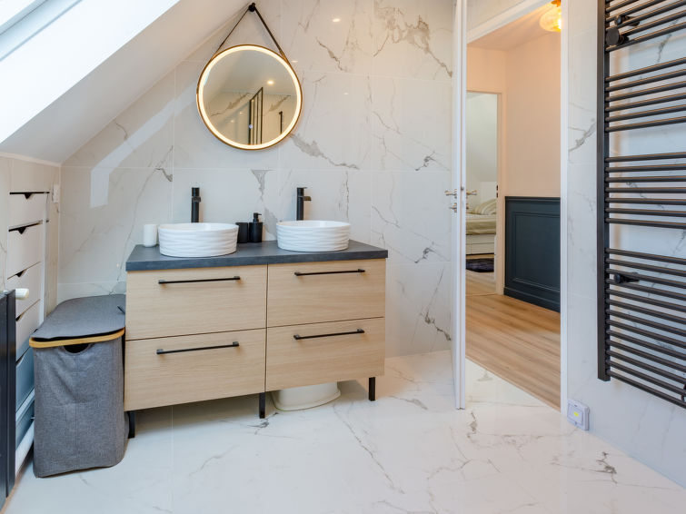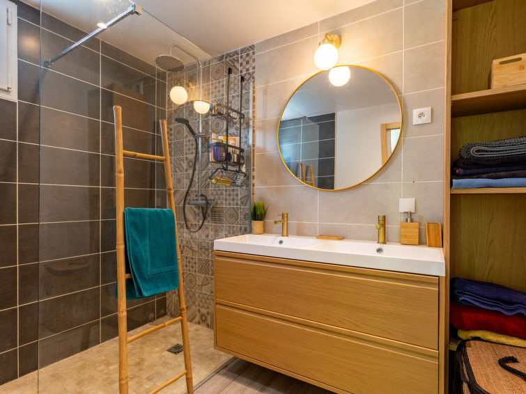 Maison 6 pièces 170 m2 sur 2 niveaux, situation sud. Séjour/salle à manger avec cheminée et TV (écran plat). Sortie sur le jardin, sur la terrasse. 1 chambre avec 1 grand-lit (140 cm, longueur 190 cm), douche et double vasque. Sortie sur la terrasse. Cuisine (four, lave-vaisselle, 4 plaques vitrocéramiques, grille-pain, bouilloire électrique, micro-ondes, congélateur, cafetière électrique, Capsules pour machine à café (Nespresso) (NON INCLUSES)). WC séparé. Chauffage électrique. À l'étage supérieur: 1 chambre avec 2 lits (90 cm, longueur 190 cm). 1 chambre avec 1 lit gigogne (2 x 90 cm, longueur 190 cm). 1 chambre avec 1 grand-lit (140 cm, longueur 190 cm). 1 chambre avec 2 lits (90 cm, longueur 190 cm), TV (écran plat). Bain/WC, double vasque. Chauffage électrique. Sol en parquet. Terrasse 120 m2, situation sud. Meubles de terrasse, barbecue, chaises longues. A disposition: lave-linge, fer à repasser, sèche-cheveux. Internet (Connexion WIFI, gratuit). Veuillez noter: détecteur de fumée. Annonce d'un particulier (art 155, IV du CGI).