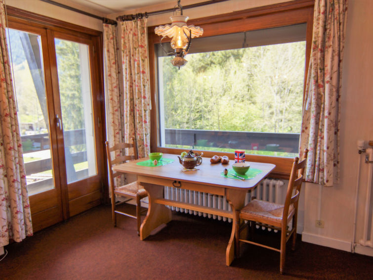 Appartement 2-kamers 38 m2 op de 2e verdieping. Eenvoudig ingericht: woon-/eetkamer met 1 uitschuifbaar bed (2 pers. 2 x 90 cm, lengte 190 cm), TV en Flatscreen TV. Uitgang naar het balkon. 1 kamer met 1 x 2 stapelbedden (90 cm, lengte 190 cm). Open keuken (2-pits kookplaat, oven, broodrooster, waterkoker, magnetron, elektrische koffiemachine). Bad/WC. Balkon 7 m2, op het noordoosten gelegen balkon 7 m2, op het zuidwesten gelegen. Zeer mooi uitzicht op de bergen. Ter beschikking: wasmachine. Internet (Internet (WiFi), extra). Garage nr. 15 pour moto/vélos. Niet rokers woning. TV alleen FR. Rookmelders. 74056 001706 SY