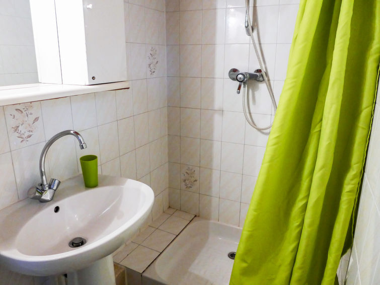 Appartement 2-kamers 42 m2 op de 3e verdieping. Eenvoudig ingericht: woon-/eetkamer met TV. Uitgang naar het balkon. Slaapnis met 1 x 2 stapelbedden (90 cm, lengte 190 cm). 1 kamer met 1 2-pers bed (140 cm, lengte 190 cm). Kookhoek (oven, afwasmachine, 2 keramische glas kookplaten, magnetron, elektrische koffiemachine, pads voor de koffiemachine (Tassimo) extra). Douche, aparte WC. Elektrische verwarming. Balkon, op het noordoosten gelegen. Uitzicht op de bergen. Ter beschikking: wasmachine. Internet (Internet (WiFi), extra). Garage nr. 34 petite voiture. TV alleen FR. Rookmelders. In plaats van een afgesloten slaapkamer bevinden sommige slaapgedeeltes zich in een open ruimte (galerij, nis, etc.). 7405600114019