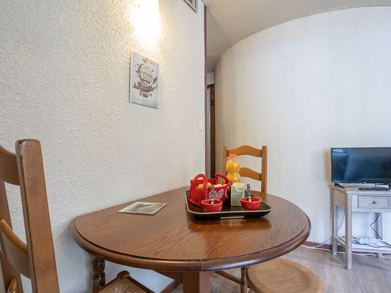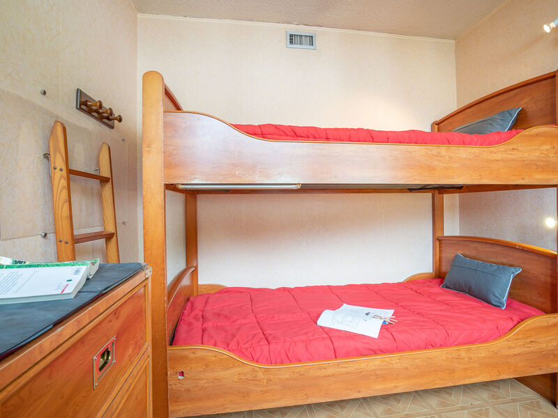 Appartement 2-kamers 32 m2 op de 4e verdieping. Woon-/eetkamer met 1 2-pers divanbed (160 cm, lengte 200 cm), TV. Uitgang naar het terras. 1 kamer met 1 x 2 stapelbedden (90 cm, lengte 190 cm). Kookhoek (2-pits kookplaat, oven, waterkoker, magnetron, diepvriezer, elektrische koffiemachine). Bad/WC. Elektrische verwarming. Terras 15 m2, op het noordwesten gelegen. Mooi uitzicht op de bergen. Ter beschikking: Internet(WiFi), extra). Geen parkeerplaats. TV alleen FR. Rookmelders. Kleine parkeergarage. Aanbod door een particulier volgens art. 155, IV van CGI.
